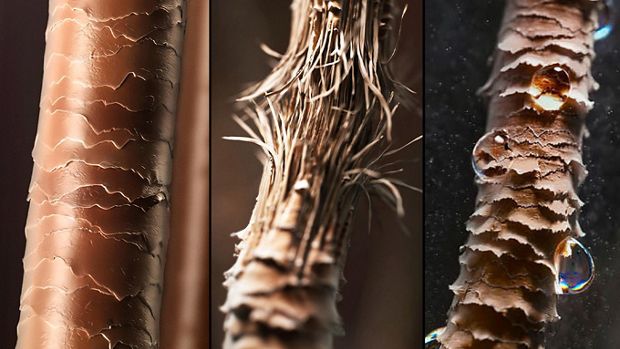 Una vez que los enlaces de proteínas se rompen y las cutículas del cabello se agrietan, el córtex interno queda expuesto a todo tipo de daños.