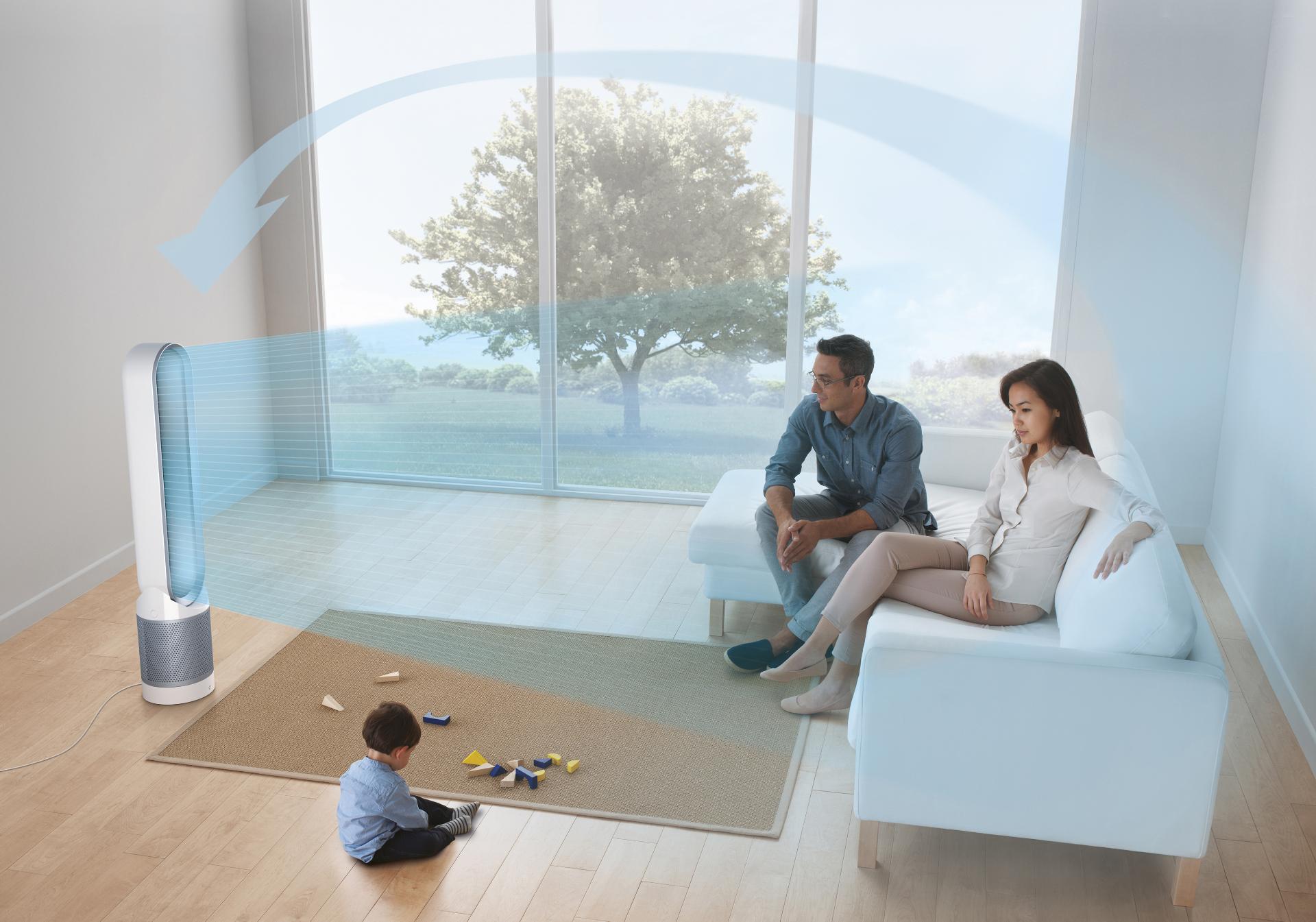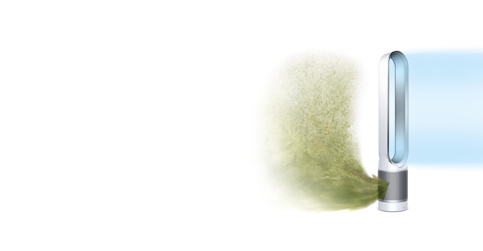 Purificadores ventiladores Dyson elimina automáticamente el 99.97% de los alérgenos y contaminantes de hasta 0.3 micras.