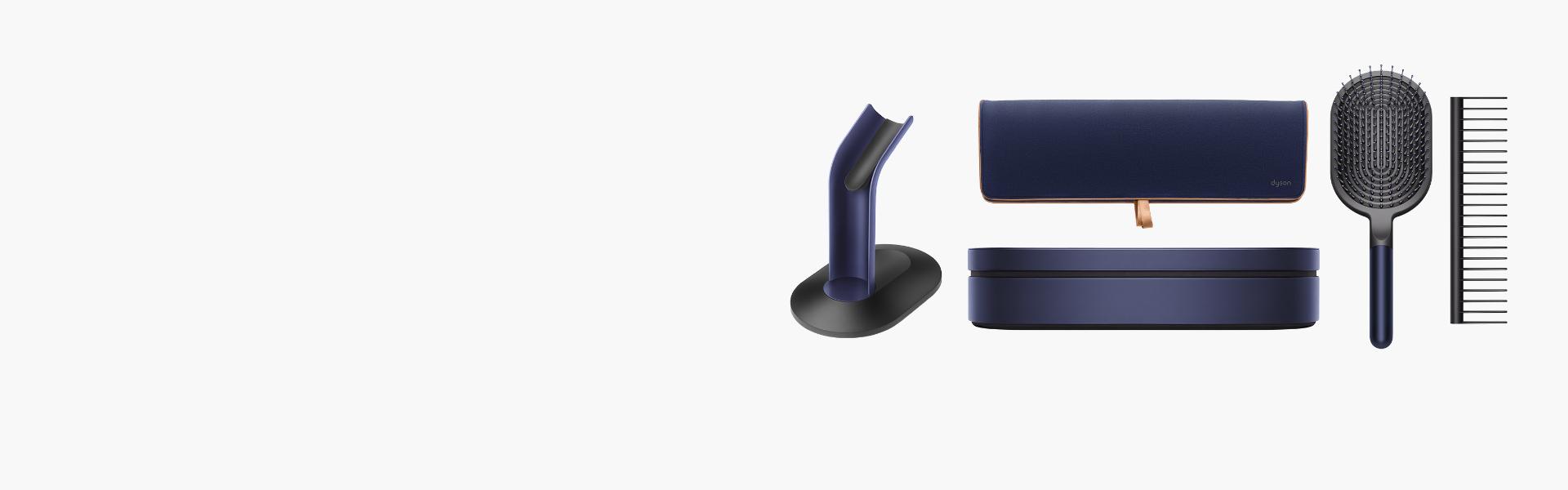 Almacena tu alaciadora Dyson Airstrait™ en el estuche edición especial color azul diseñado por James Dyson