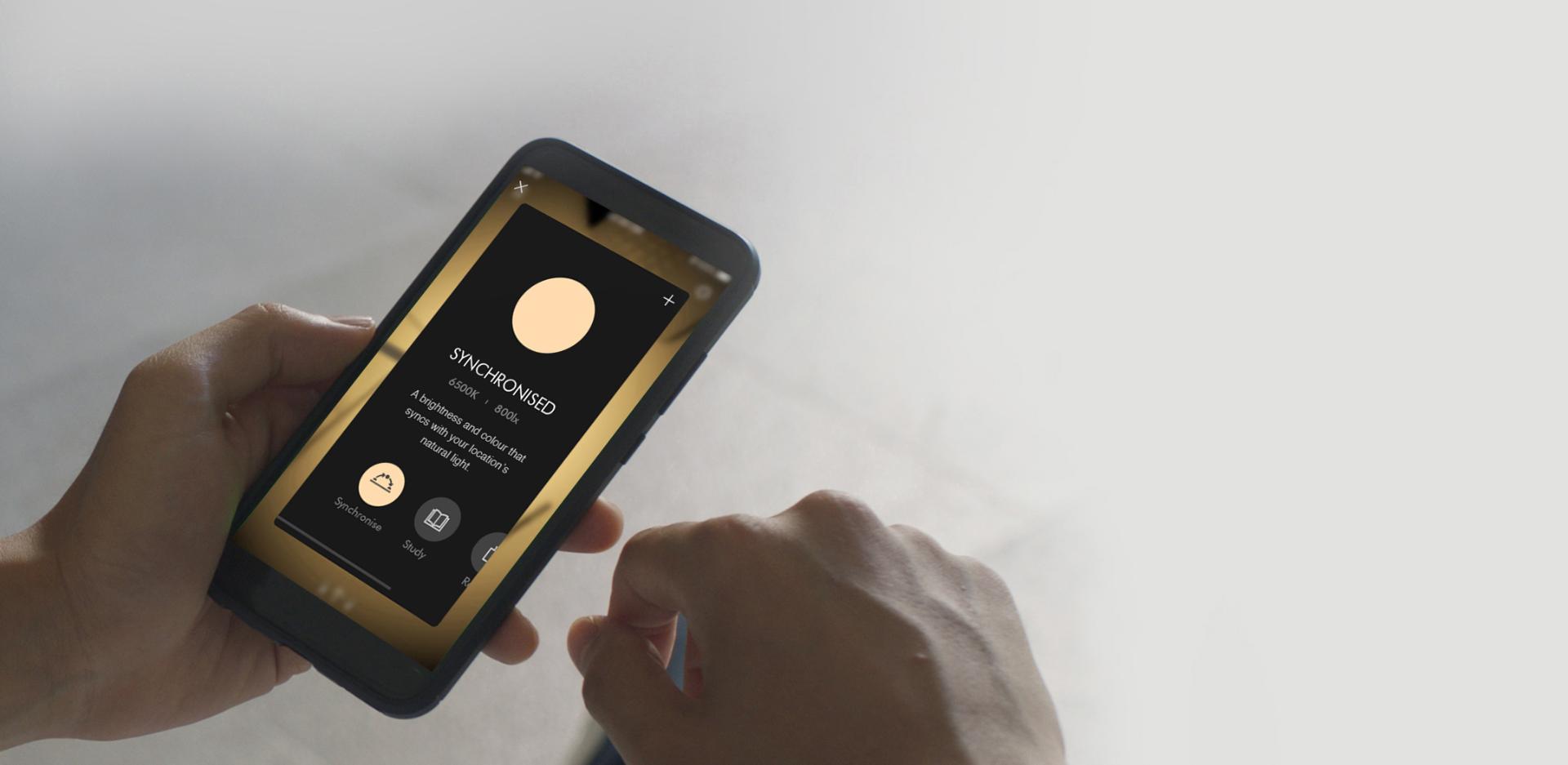 La app Dyson Link se conecta con tu lámpara Dyson Lightcycle™ a través de la tecnología inalámbrica Bluetooth® para crear una experiencia altamente personalizada, que se adapta a la tarea que realizas, a tu edad y al momento del día.